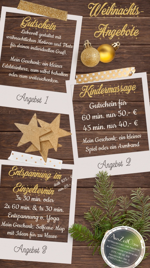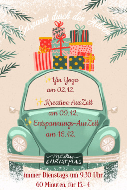 * Entspannungs-Auszeit, am 16.12. -> verschiedene Übungen die dich tief in die Entspannung führen, loslassen, abgeben, auftanken