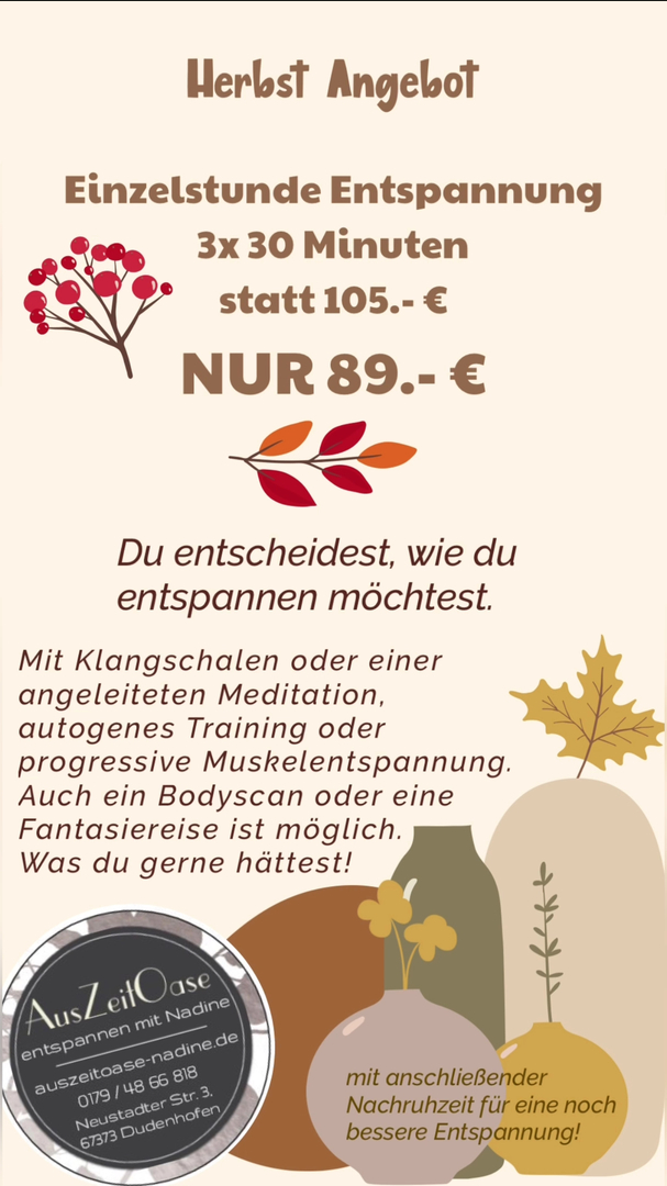 Individuelle Entspannungsstunden – 3 x 30 Minuten oder 2+1 Variation