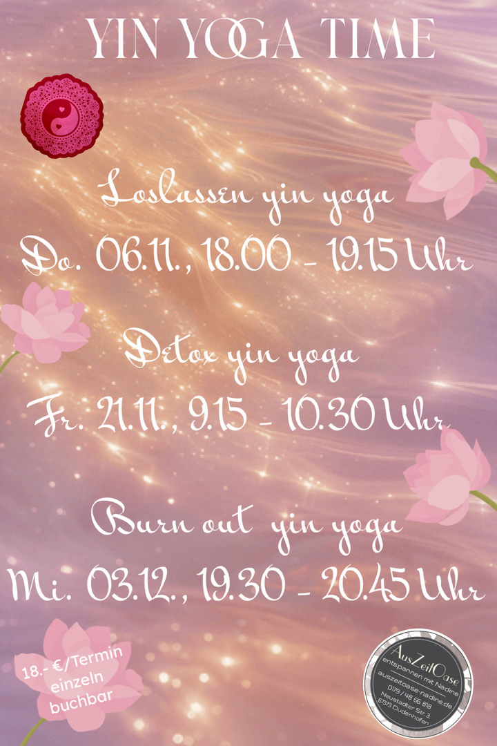 Yin Yoga eignet sich für alle Levels, stärkt die Selbstwahrnehmung und führt Körper & Geist in die Ruhe und lässt die Energie wieder fließen.