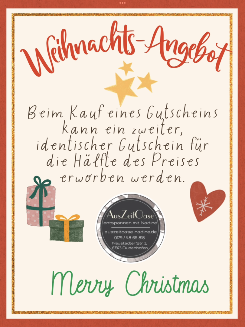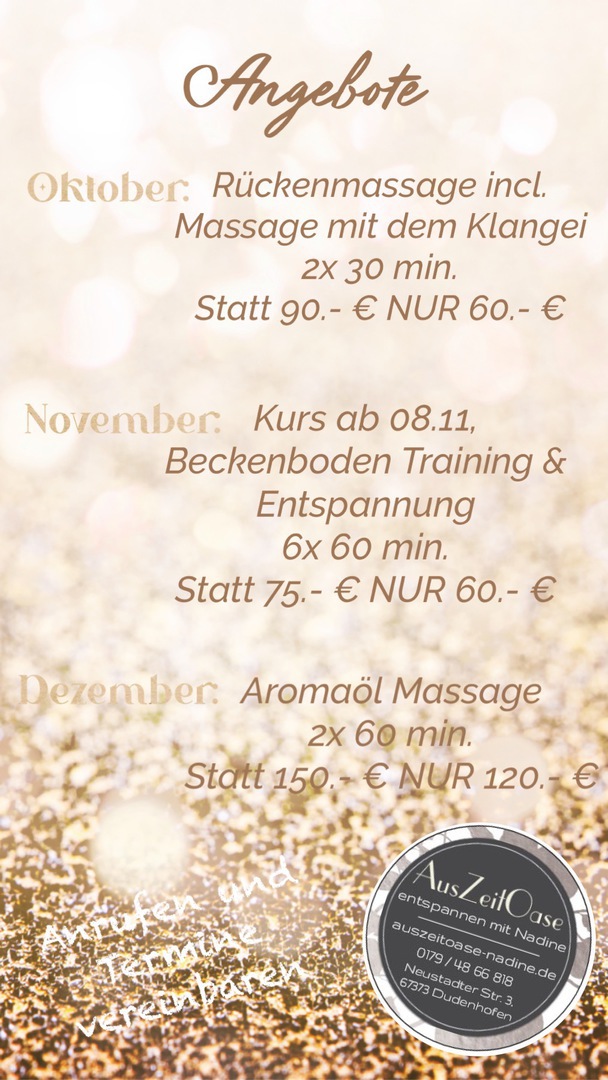 70.- € statt 85.- € (60 Minuten - Ganzkörpermassage)